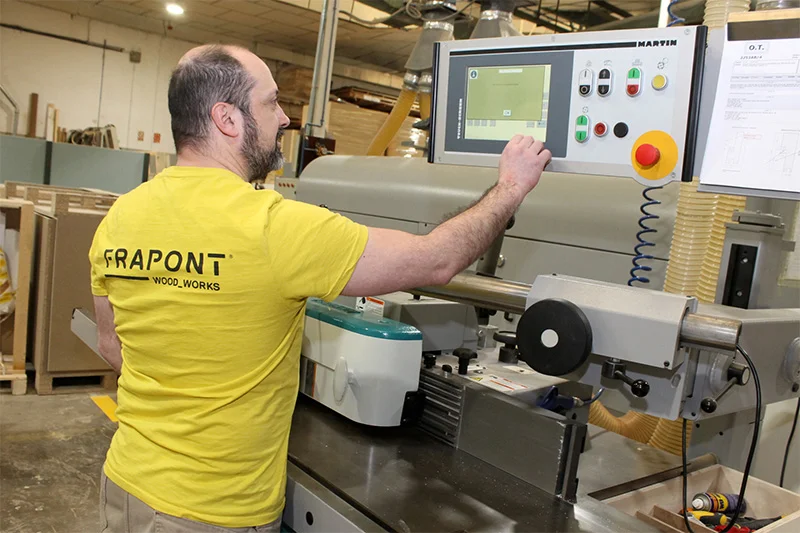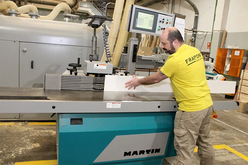 LA ESPECIALIZACION, A LAS MAQUINAS Mediante un control digital intuitivo, FRAPONT ha trasladado la especialización desde las manos de sus profesionales ebanistas hacia las máquinas. Máquinas que dan el ajuste a la décima de milímetro. «Toda la especialidad que puede alcanzar un operario la tiene una MARTIN; es un paso decisivo de cara a las próximas generaciones de aprendices, ante la previsible escasez de futuros carpinteros». Con una programación de trabajo, cualquier operario puede sacarle mucho más rendimiento. «No elegimos las máquinas de MARTIN por precio, sino porque son las mejores en su categoría y porque nos garantizan una formación completa en torno a su funcionamiento y muy buen servicio postventa, AIRMATIC siempre se ha distinguido por la calidad y superioridad de sus productos.» «Gracias a la formación que recibimos de AIRMATIC sobre estas máquinas, su implementación en el programa de trabajo de FRAPONT se alcanzó en una semana». Fuente: www.madera-sostenible.com